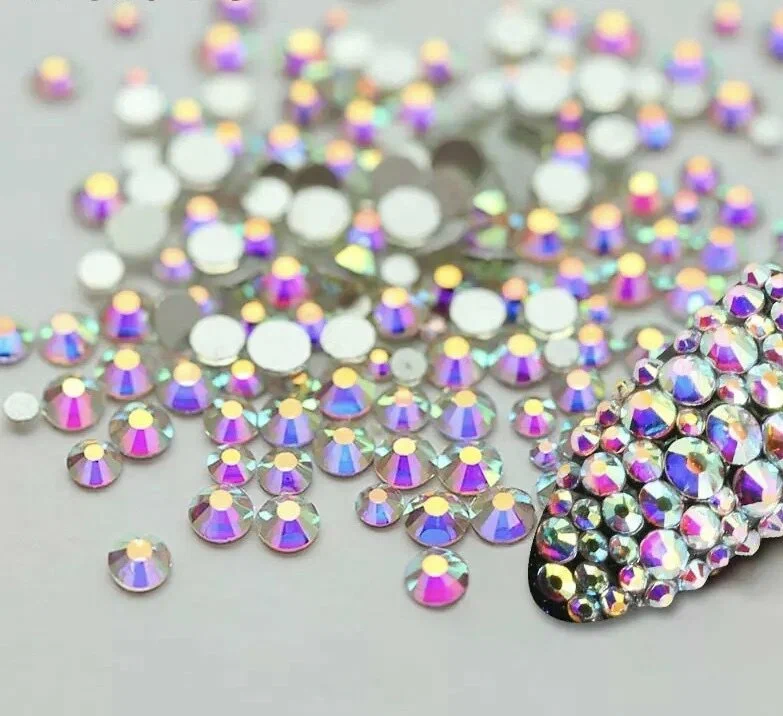 Наиболее популярный тип: стеклянные, керамические или акриловые кристаллы с плоской задней стороной. Подходят для клеевых и швейных технологий. Встречаются варианты с различной степенью блеска и толщиной металлизированной обкладки.